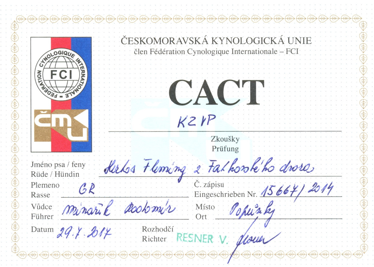 Hodnocení: I.cena, CACT, vítěz zkoušek /11psů/